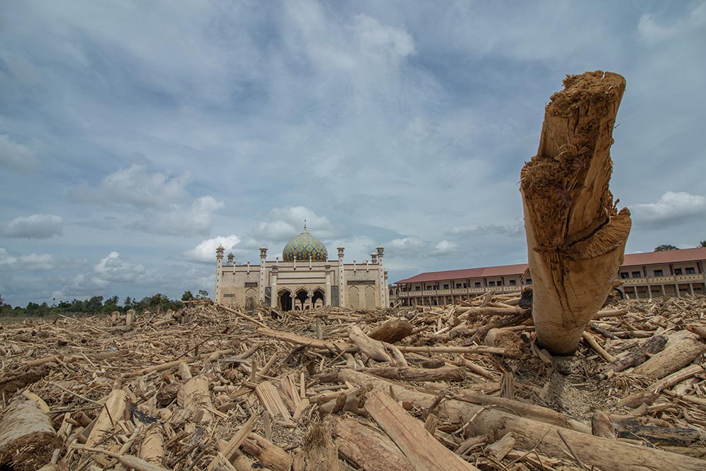 Logs are in the courtyard of the Darul Mukhlisin mosque. (foto by CMTH)